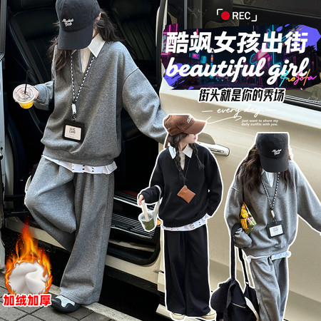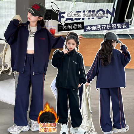1*1下载视频“F306-加绒款夹绳绣花针织套装”